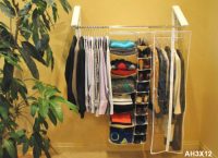This versatile storage system replaces a typical floor standing garment rack that occupies 8 – 10 sq. ft. of floor space creating a “Clutter Free Zone”, a welcomed feature particularly in smaller rooms where maximum floor space is a necessity.