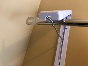 7. Slide the telescopic rod along the hanging rods to the kinked resting position.